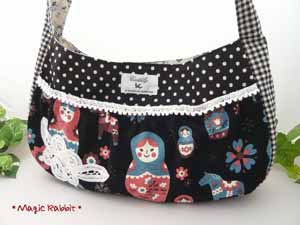 先日のピンク生地とお揃いの黒いマトちゃん生地です。