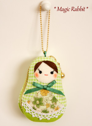 マトリョーシカ型(洋ナシ型)のツツミボタンを使って作った