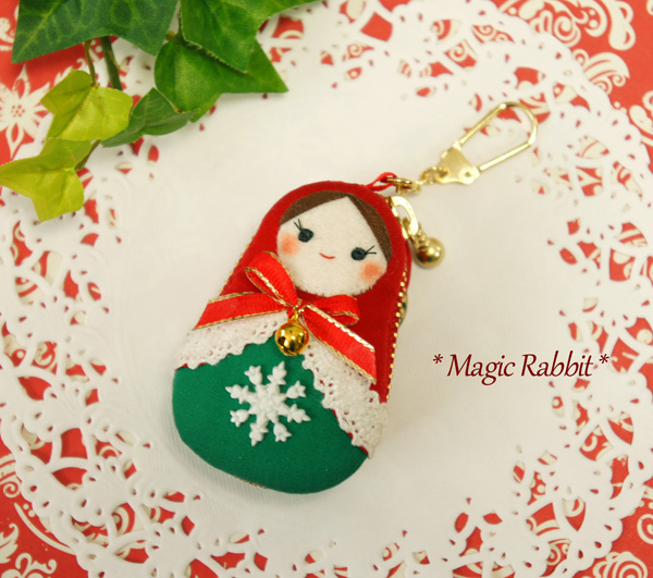 今日は、昨日の画像にちらっと写っていたクリスマスカラーのマトリョーシカです。