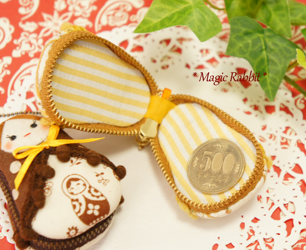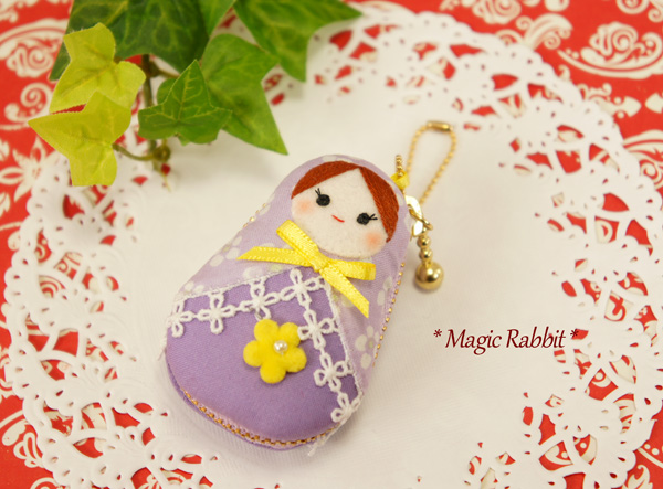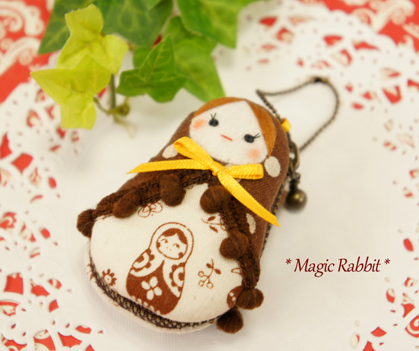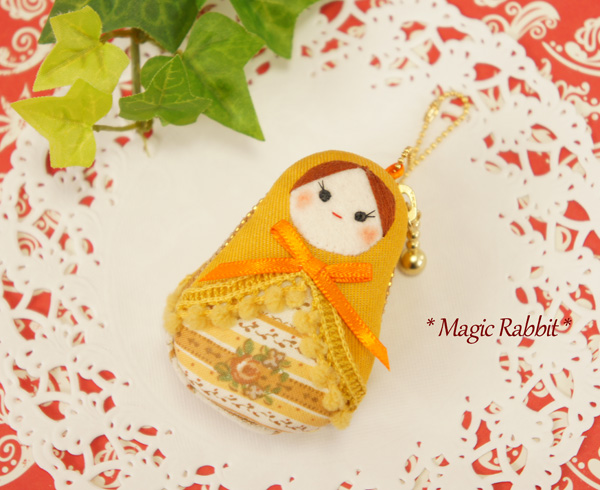 もう面倒くさくなってきましたが、マトリョーシカ型のツツミボタンを使った作品、第5弾です。