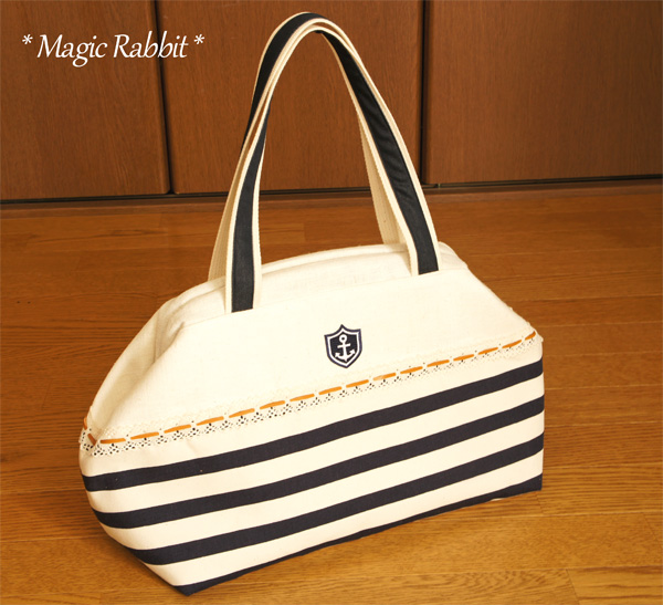 思いっきり夏を意識して、ネイビーのボーダーとアンカー柄のアップリケを使いましたよ(#^.^#)