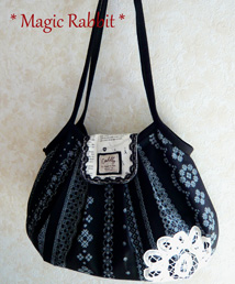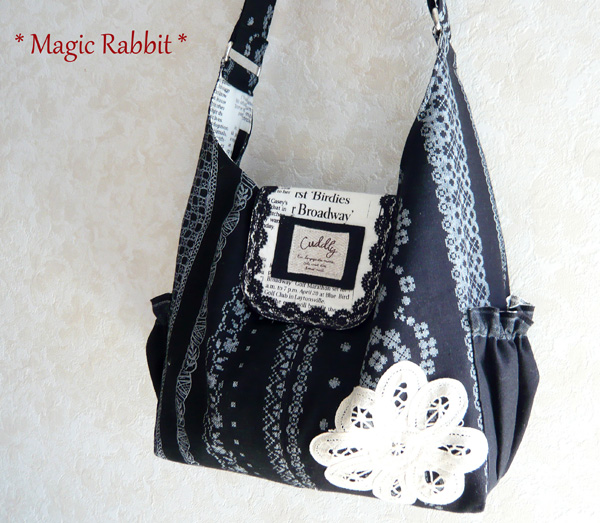 黒と英字新聞柄の生地で、ビシッ!と決めてみました。