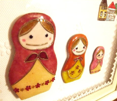 七宝焼きでマトリョーシカ3姉妹を作ってみました。