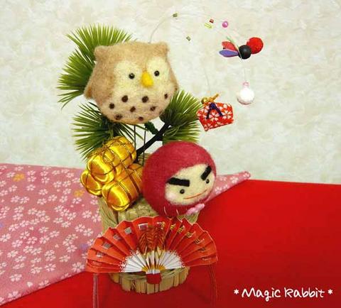 ふくろうさんとだるまさんのめでたいコンビで、お正月飾りを作りました。