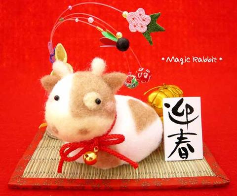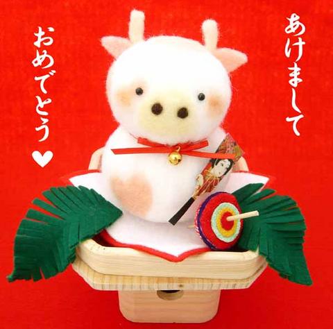 鏡餅ならぬ鏡丑です。ハートの模様がついています。